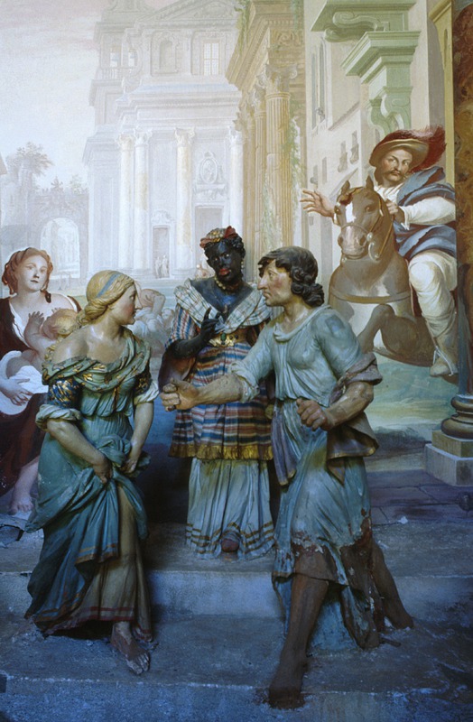 Orta San Giulio - Sacro Monte - Cappella XX - Interno - La canonizzazione di S. Francesco - Gregorio IX consegna al cardinale la bolla di canonizzazione; vi assistono ecclesiastici ed ambasciatori - Part.: paggio - Statue in terracotta policrome - 1678Di Carlo, AntonioGabinetto Fotografico Nazionale