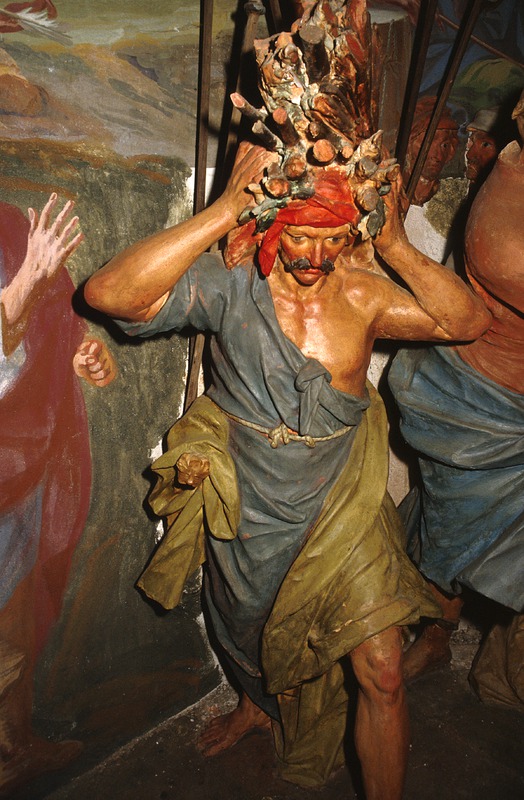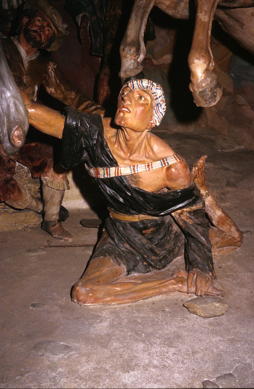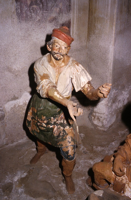 Orta San Giulio - Sacro Monte - Cappella XIII - Interno - S. Francesco, per umiltà, si fa condurre nudo per le vie di Assisi; nobili, popolani, cavalieri, assistono alla scena - Part.: popolano - Statue in terracotta policrome - 1698Di Carlo, AntonioGabinetto Fotografico Nazionale