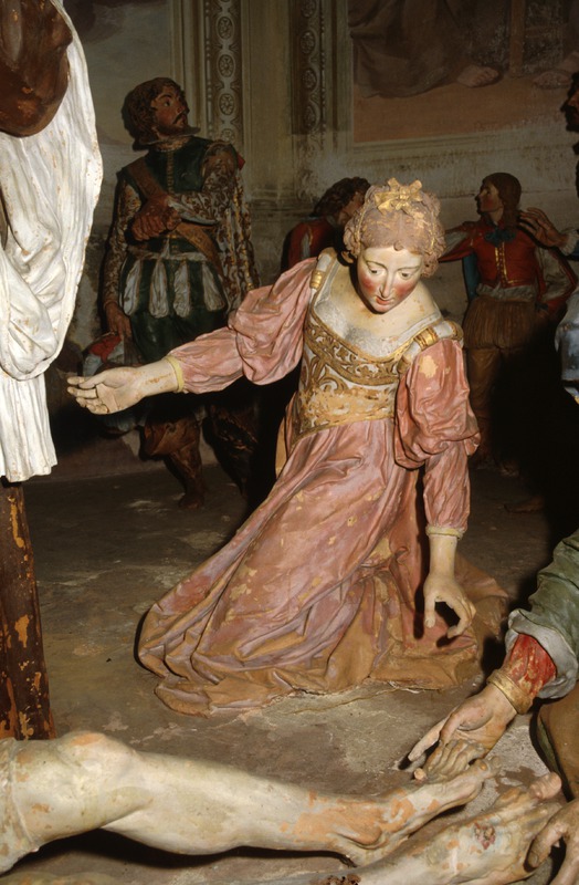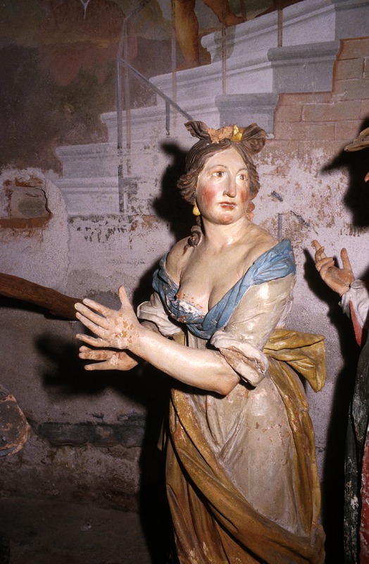 Orta San Giulio - Sacro Monte - Cappella XIII - Interno - S. Francesco, per umiltà, si fa condurre nudo per le vie di Assisi; nobili, popolani, cavalieri, assistono alla scena - Part.: popolana - Statue in terracotta policrome - 1698Di Carlo, AntonioGabinetto Fotografico Nazionale