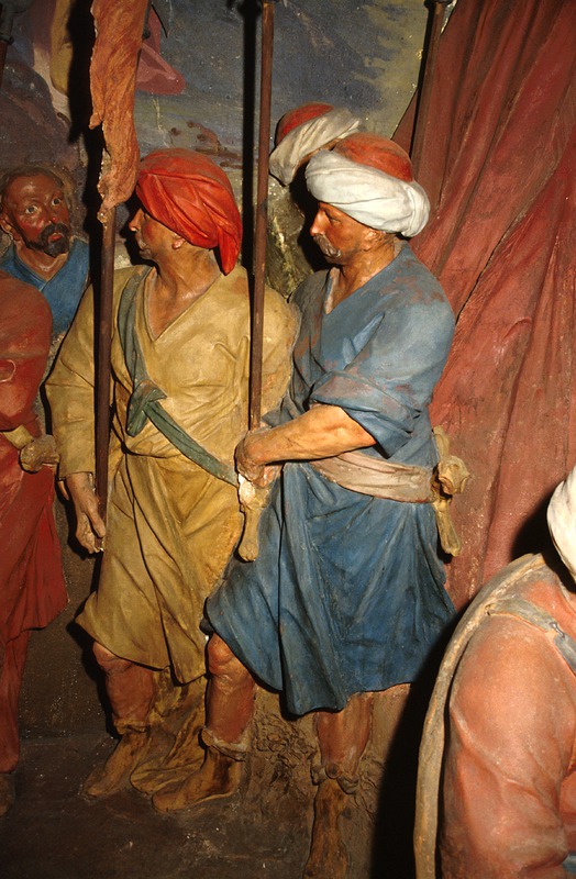 Orta San Giulio - Sacro Monte - Cappella XIV - Interno - S. Francesco, istitutore delle missioni estere in senso moderno, predica davanti al sultano d'Egitto Melek-el-Kamel - Part.: armigeri - Statue in terracotta policrome - 1756Di Carlo, AntonioGabinetto Fotografico Nazionale
