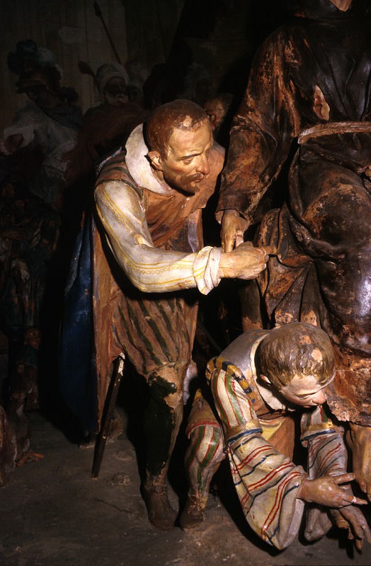 Orta San Giulio - Sacro Monte - Cappella XIX - Interno - I miracoli sul sepolcro del Santo; accorre una folla continua, di persone e infermi, contenuta da guardie - Part.: fedeli e pellegrini - Statue in terracotta policrome - 1684Di Carlo, AntonioGabinetto Fotografico Nazionale
