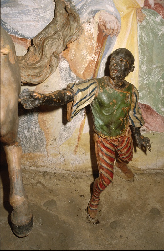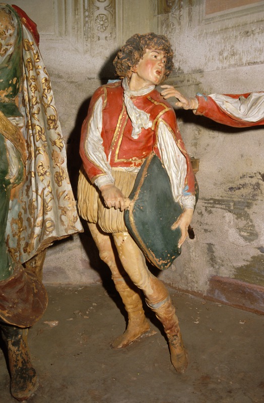 Orta San Giulio - Sacro Monte - Cappella XVI - Interno - S. Francesco torna ad Assisi dalla Verna poco prima di morire; la folla si schiera al passaggio del Santo stigmatizzato - Part.: paggio - Statue in terracotta policrome - Sec. XVII/ fineDi Carlo, AntonioGabinetto Fotografico Nazionale