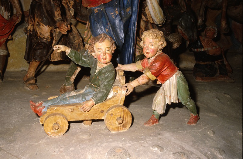 Orta San Giulio - Sacro Monte - Cappella XVI - Interno - S. Francesco torna ad Assisi dalla Verna poco prima di morire; la folla si schiera al passaggio del Santo stigmatizzato - Part.: fanciulli intenti al gioco - Statue in terracotta policrome - Sec. XVII/ fineDi Carlo, AntonioGabinetto Fotografico Nazionale