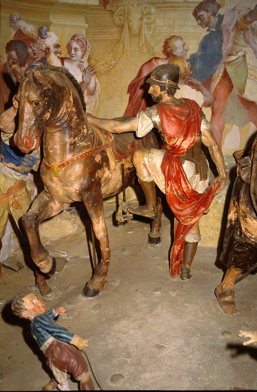 Orta San Giulio - Sacro Monte - Cappella XIII - Interno - S. Francesco, per umiltà, si fa condurre nudo per le vie di Assisi; nobili, popolani, cavalieri, assistono alla scena - Particolare - Statue in terracotta policrome - 1698Di Carlo, AntonioGabinetto Fotografico Nazionale