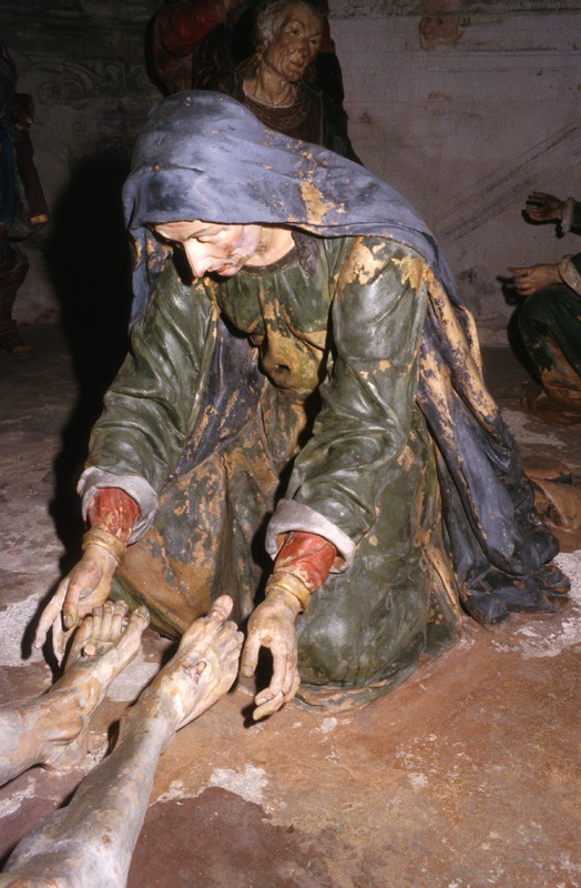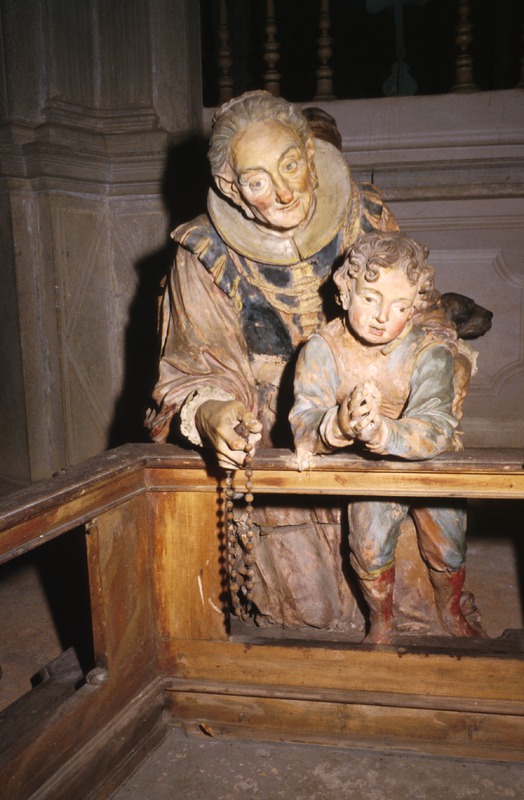 Orta San Giulio - Sacro Monte - Cappella XIX - Interno - I miracoli sul sepolcro del Santo; accorre una folla continua, di persone e infermi, contenuta da guardie - Part.: fanciullo e anziana in preghiera - Statue in terracotta policrome - 1684Di Carlo, AntonioGabinetto Fotografico Nazionale