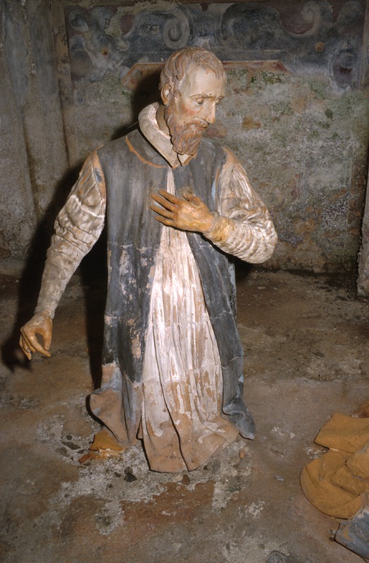 Orta San Giulio - Sacro Monte - Cappella XVIII - Interno - Nicolò III, un vescovo ed il segretario sulla tomba del Santo - Part.: segretario - Statue in terracotta policrome - 1624Di Carlo, AntonioGabinetto Fotografico Nazionale