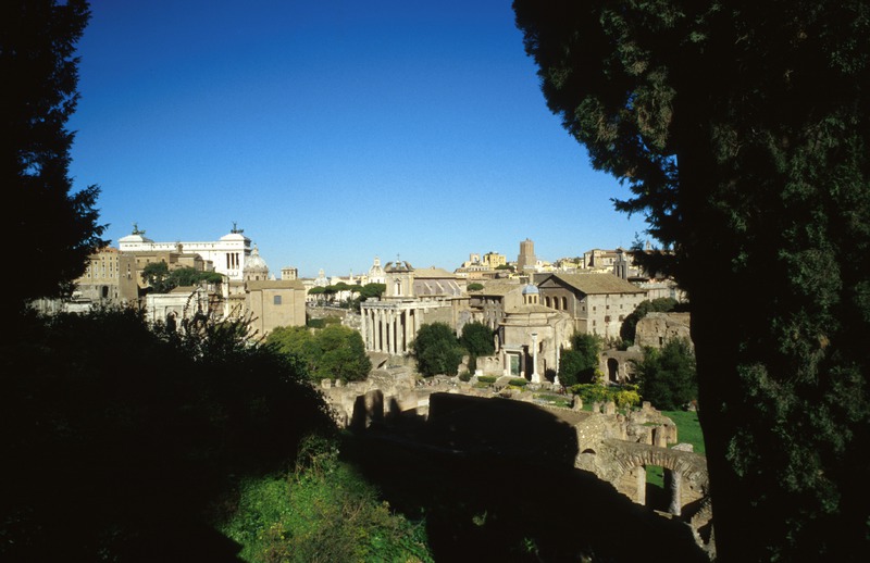 Roma - Panorama - Foro Romano: sono visibili l'arco di Settimio Severo, la Curia, il tempio di Antonino e Faustina e l'Altare della PatriaDi Carlo, AntonioGabinetto Fotografico Nazionale