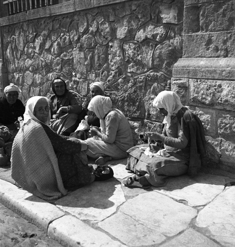 Veduta;Mercato: Contadine Lavorano a MagliaMorpurgo, LucianoMorpurgo